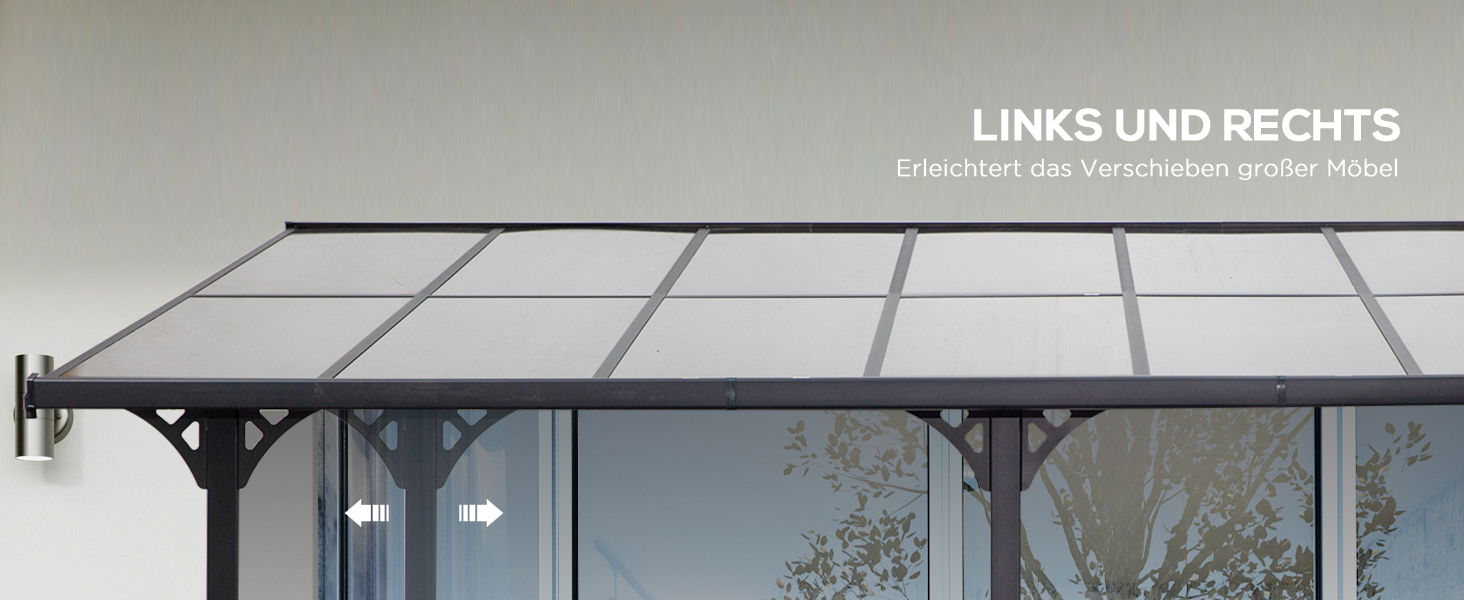 VOOR BUITENGEBRUIK: Deze luifel bestaat uit een stevig aluminium frame en een dak van stevige plastic panelen, waardoor de luifel roestvrij en weerbestendig is.