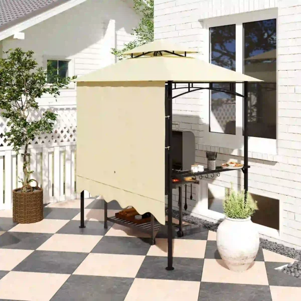 Stevige constructie: Dit barbecue prieel is gemaakt van een weerbestendig, poedergecoat metalen frame en wordt geleverd met geslepen spijkers en expanderschroeven voor stabiele montage.