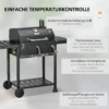 Handige temperatuurregeling: Onze grill is moeiteloos te bedienen: de houtskool is in hoogte verstelbaar en wordt bediend met een praktische handkrukas. De gemakkelijk toegankelijke voordeur maakt het gemakkelijk om de houtskool bij te vullen. Het geïntegreerde deksel zorgt ervoor dat de warmte niet ontsnapt