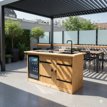 Transformeer jouw buitenruimte in een stijlvolle en functionele kookplek met de Buitenkeuken Arizona. Met zijn hoogwaardige materialen, strakke afwerkingen en slimme indeling biedt deze buitenkeuken alles wat je nodig hebt om je kookkunsten naar buiten te brengen.