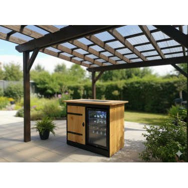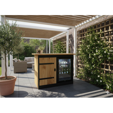 Buitenkeuken Iowa – 70 Liter Koelkast – zwart omlijst – Douglas Hout