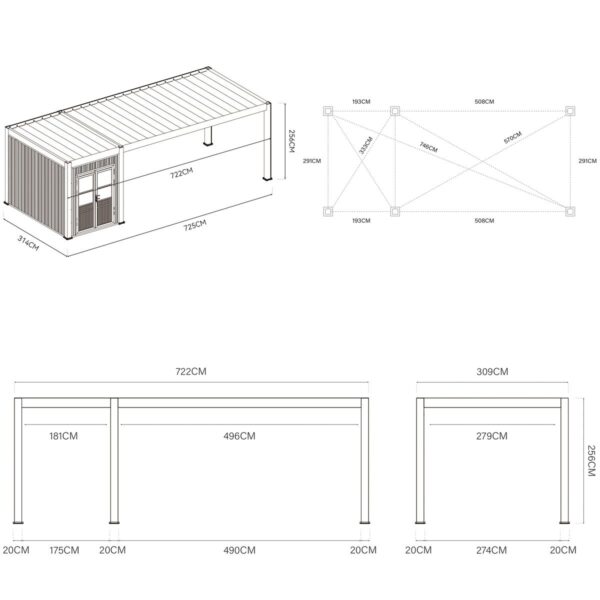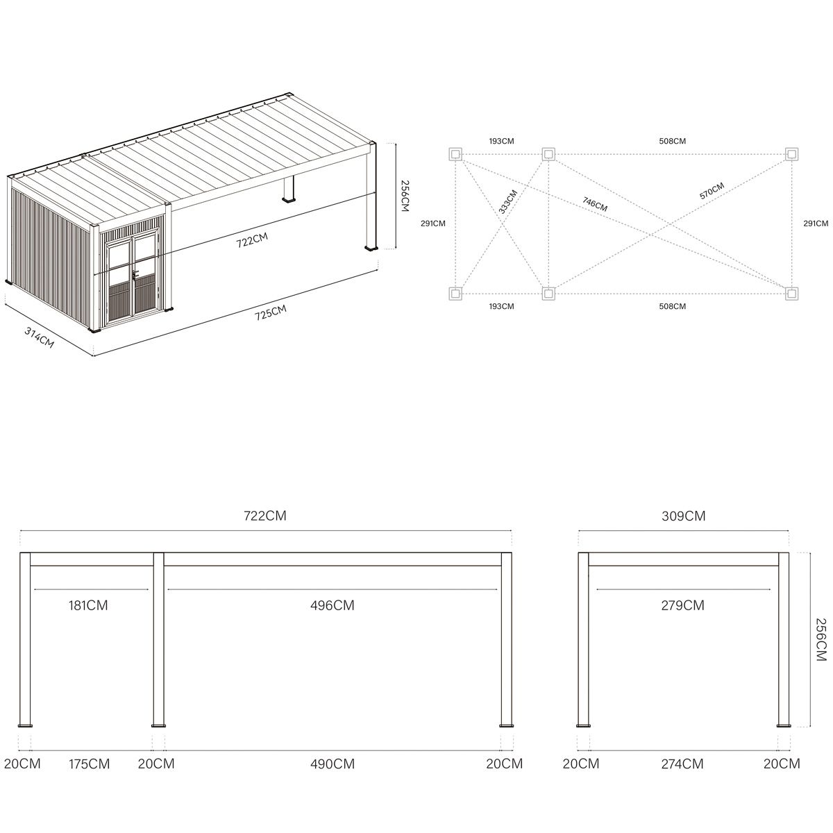 *Afmeting carport 720 (lengte) x 300 (breedte) x 255 (hoogte) cm