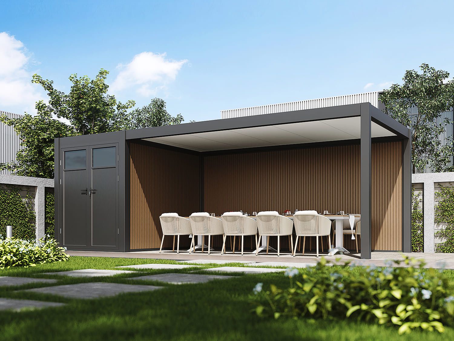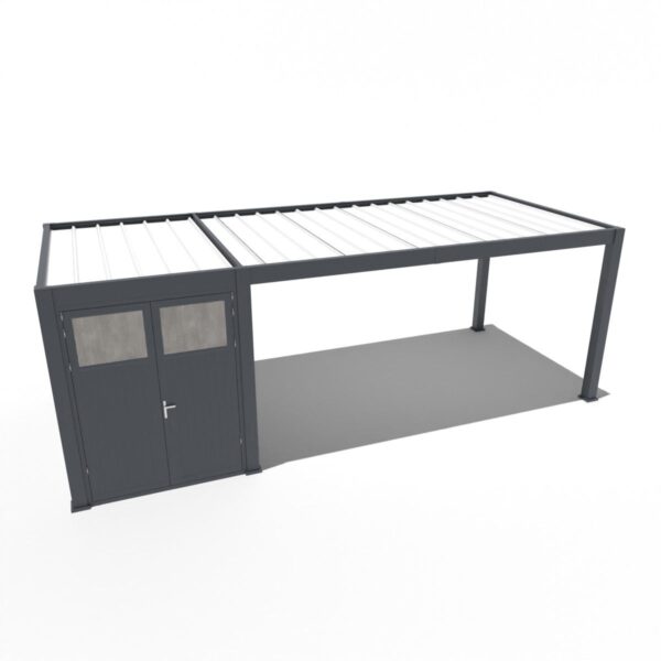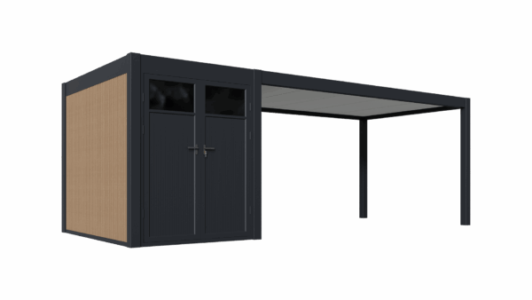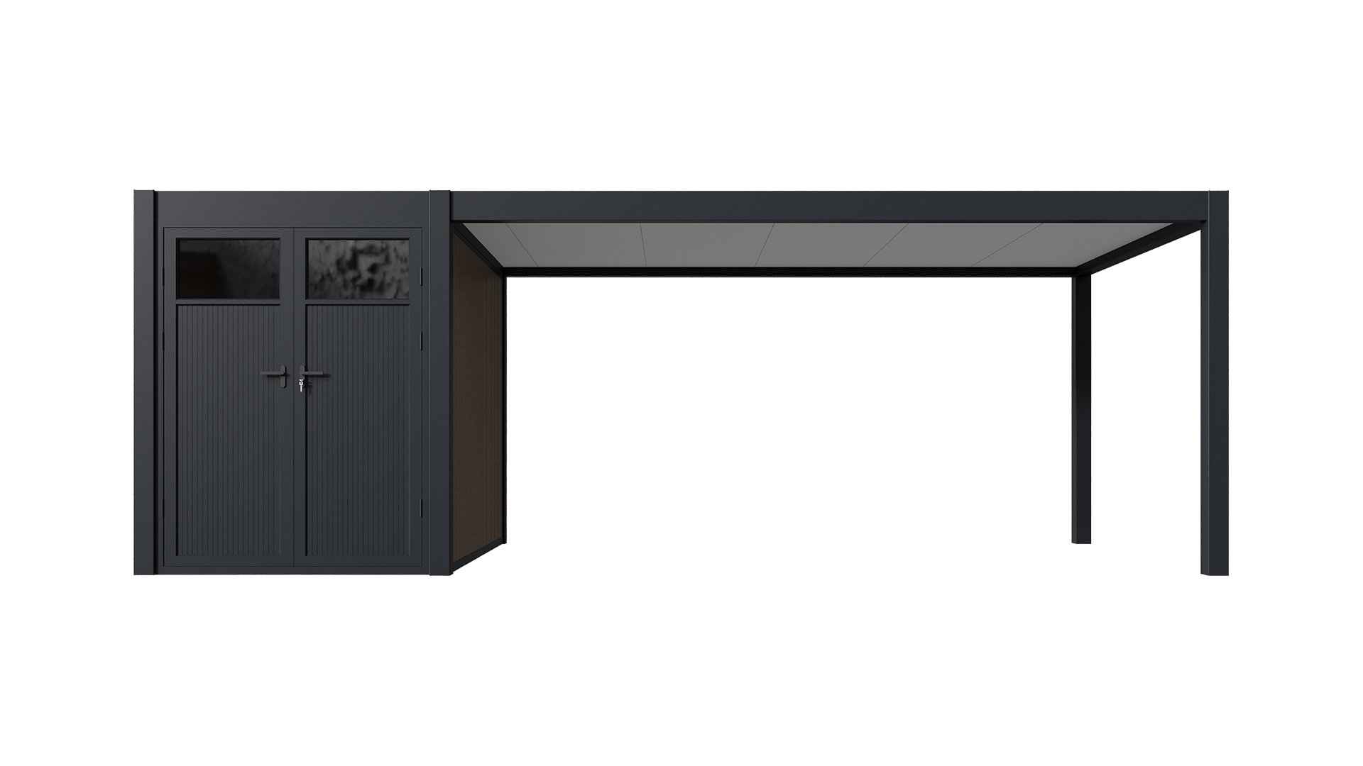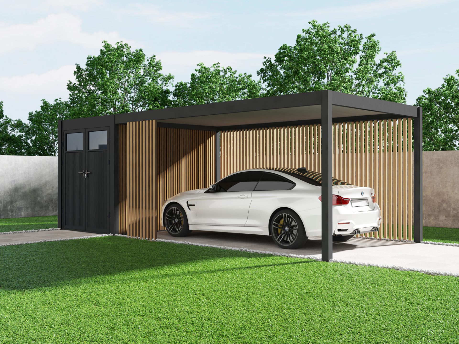 Carport – 300 x 720 cm – inclusief berging – antraciet. De Carport is dé ideale oplossing voor wie zijn auto en extra spullen wil beschermen tegen alle weersomstandigheden. Met een elegant ontwerp, een stevige aluminium structuur en een geïntegreerd water afvoersysteem biedt deze carport een combinatie van functionaliteit, stijl en duurzaamheid. Daarnaast beschikt deze carport over een geïntegreerde berging die ruimte biedt voor al uw gereedschap, tuinspullen, fietsen of andere spullen.
