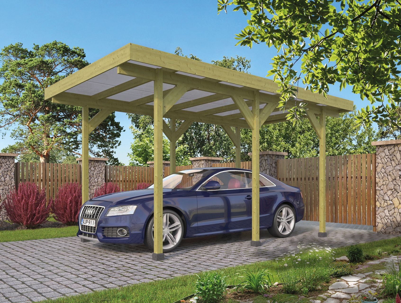 Carport Bolsward wordt standaard geleverd met licht doorlatende kunststof dakplaten en bevestigingsmaterialen als dakbedekking. U kunt deze houten carport vrijstaand of als aanbouw carport aan uw gevel monteren. U houdt dan 3 staanders over.