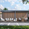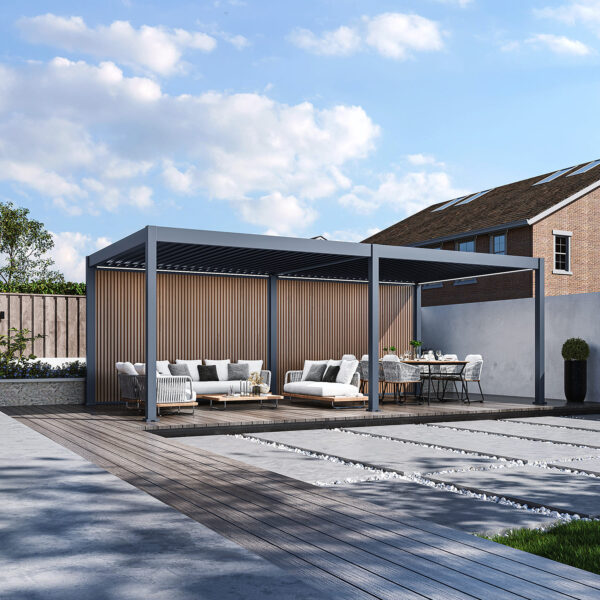 Composietwand voor Pergola – 300 x 236 cm – voor 3 m kant. De Composietwand is een echte toevoeging voor jouw overkapping. Met deze wand zorg je voor meer privacy, zit je beschut tegen de wind en heb je geen last van een laaghangende zon.