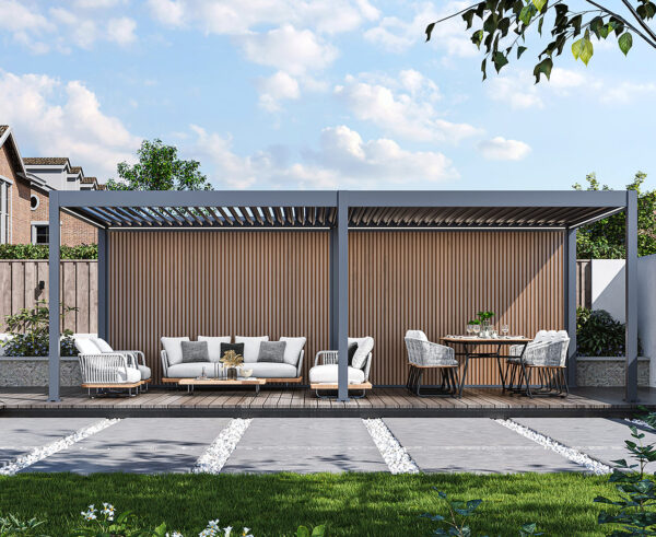 Door het unieke ontwerp bevestig je de wand volledig geïntegreerd in jouw pergola. Met de meegeleverde handleiding is het monteren van de composietwand zeer eenvoudig. Het paneel is gemaakt van WPC, een hout-kunststof verbinding.