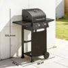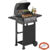 Handige werkruimte en mobiliteit: De twee zijplanken bieden ruimte voor voedselbereiding, terwijl de onderste plank de propaantank en accessoires bevat. Dankzij de twee wielen kan de gasbarbecue-trolley moeiteloos over het terras worden verplaatst.