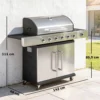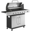 Nauwkeurige controle en robuuste structuur: De ingebouwde dubbele display thermometer zorgt voor nauwkeurige temperatuurregeling in real-time. Het stevige roestvrijstalen deksel, deuren en console, en het poedergecoate stalen frame zorgen voor een duurzame en betrouwbare constructie van de gasgrill.