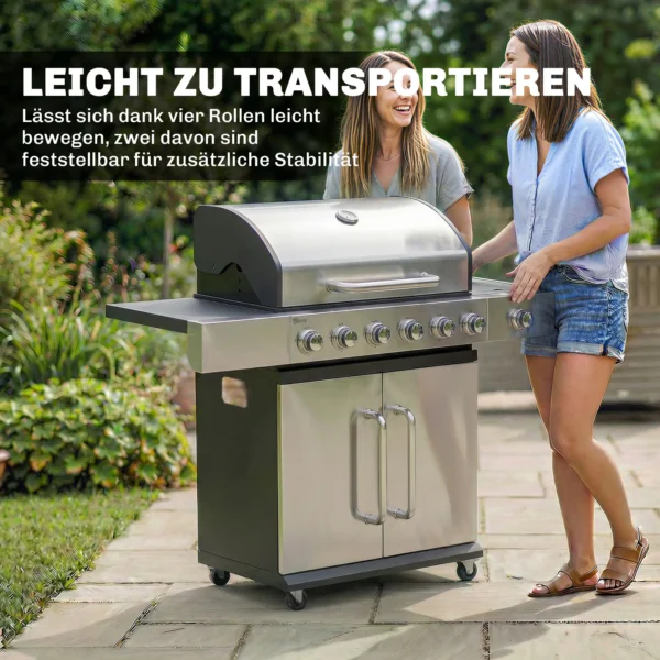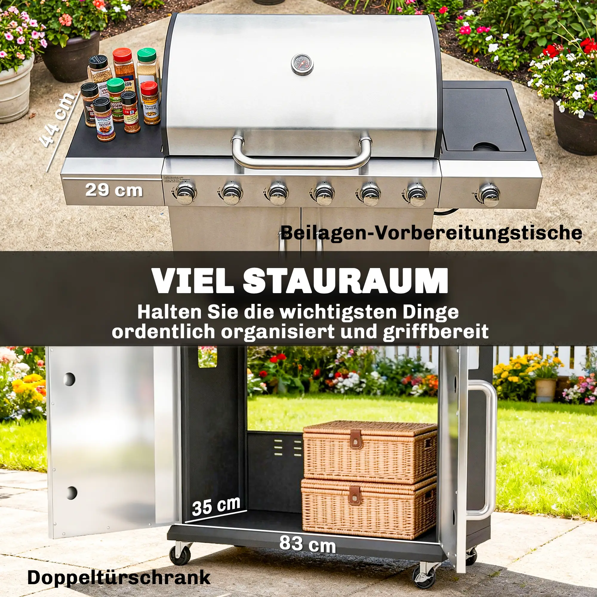✔ Met zes hoofdbranders en één zijbrander met 18,6 kW vermogen is deze gasgrill ideaal voor grote barbecuefeesten