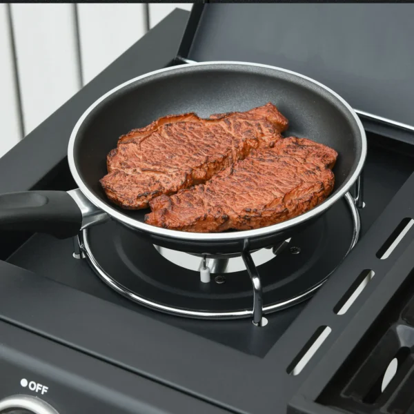 ✔ Beschikt over een combinatie van een groot hoofd kook oppervlak, een functioneel opzij brander en een warmingrek