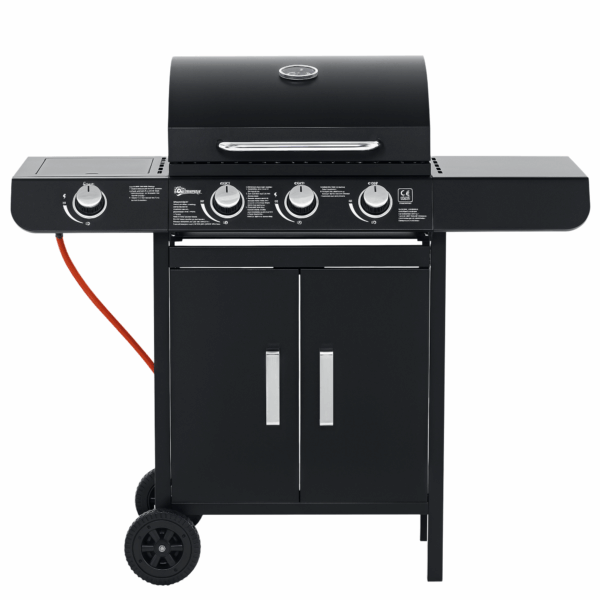 Totale afmetingen: 110L x 50W x 100H cm. 3 hoofdbranders Vermogen: 2,8 kW (9500BTU/HR); 1 kantbrandervermogen: 3,2 kW (11000BTU/Uur); Assemblage vereist.