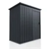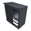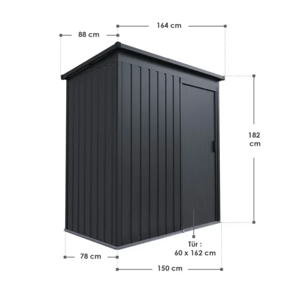De schuur, gemaakt van thermisch verzinkt plaatstaal, is bestand tegen weersinvloeden, uv-straling en vuil. Het duurzame materiaal is zeer stabiel, veerkrachtig en waterdicht. Regen en zon laten hem volledig ongemoeid.
