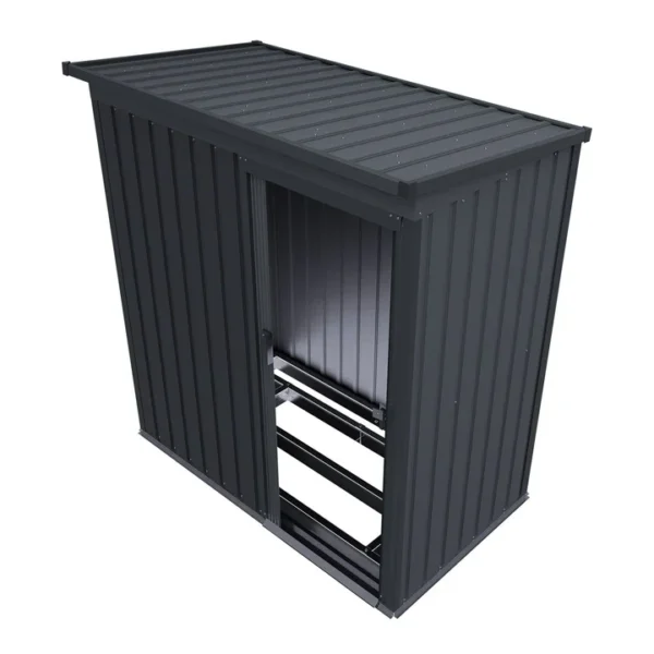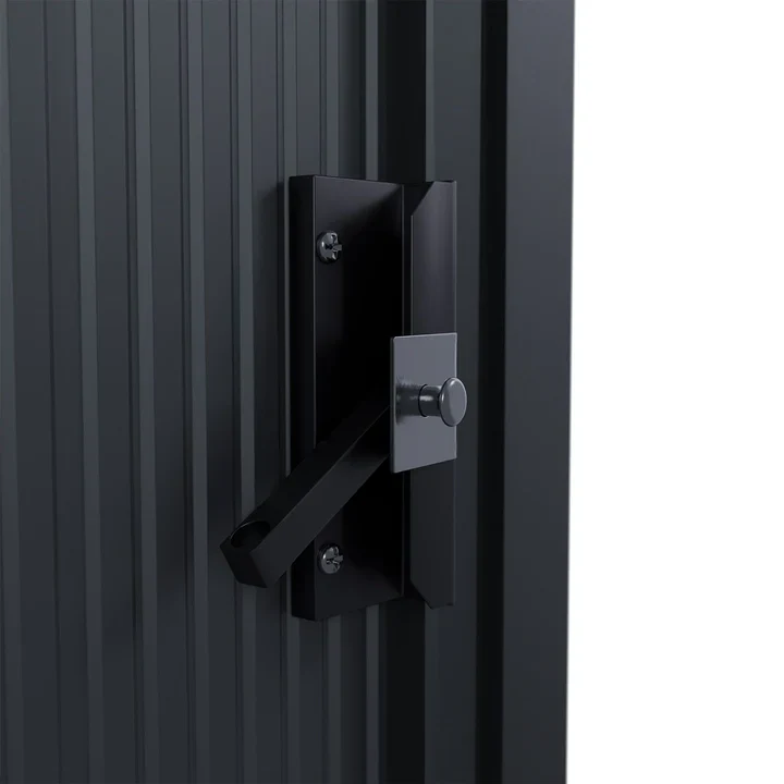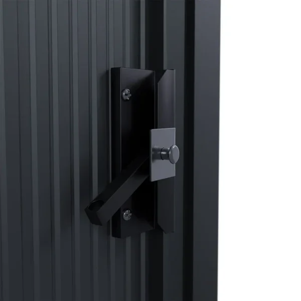 Een gedeelde schuifdeur biedt het hele jaar door toegang tot de gereedschapsschuur. De brede opening van 96 cm maakt het vervoer van omvangrijke spullen mogelijk. De deurgrepen kunnen ook worden voorzien van een slot voor veilige vergrendeling.
