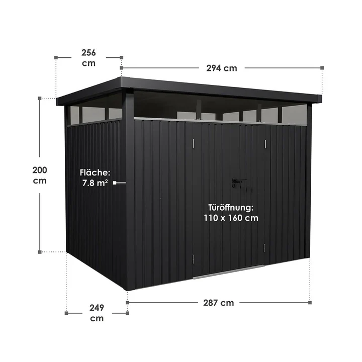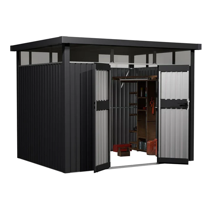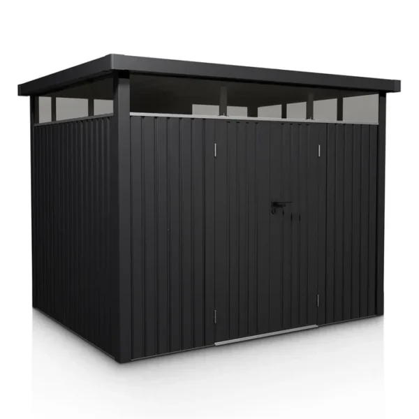 Ontdek de robuuste metalen gereedschapsschuur van 7,8 m² van HC Huis & Tuin in antraciet als de perfecte oplossing voor uw tuin! Deze moderne schuur met deuren en ramen biedt volop ruimte voor fietsen, grasmaaiers en gereedschap.