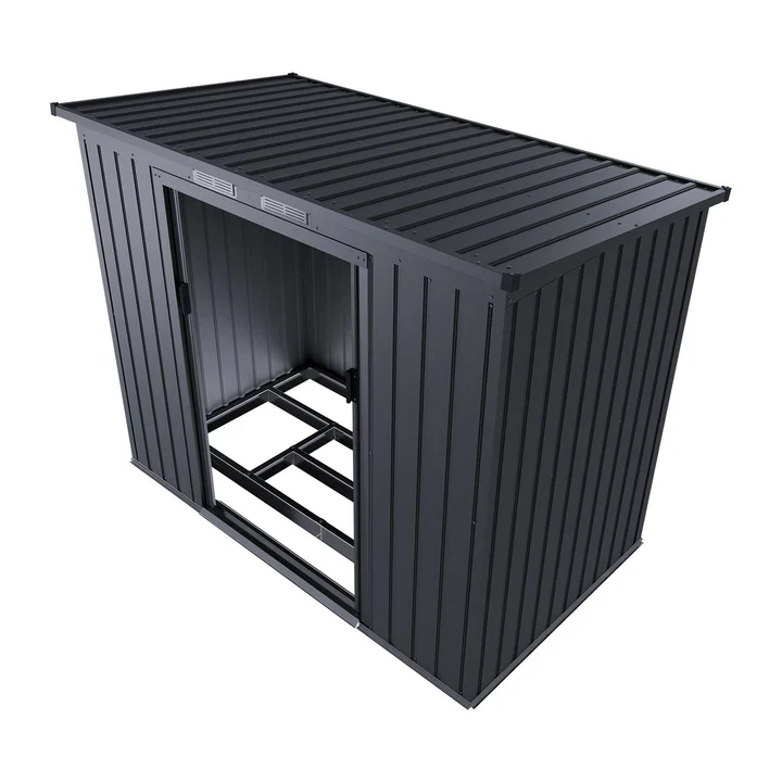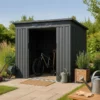 Een gedeelde schuifdeur biedt het hele jaar door toegang tot de gereedschapsschuur. De brede opening van 96 cm maakt het vervoer van omvangrijke spullen mogelijk. De deurgrepen kunnen ook worden voorzien van een slot voor veilige vergrendeling.