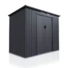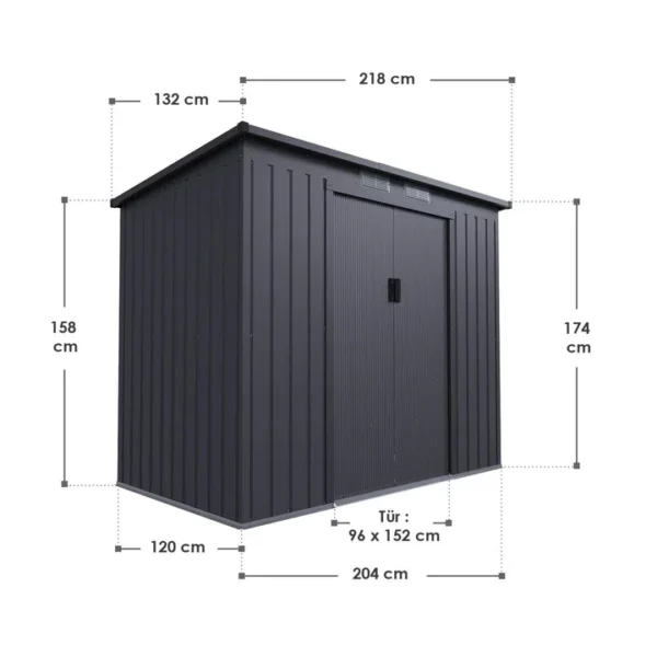De schuur, gemaakt van thermisch verzinkt plaatstaal, is bestand tegen weersinvloeden, uv-straling en vuil. Het duurzame materiaal is zeer stabiel, veerkrachtig en waterdicht. Regen en zon laten hem volledig ongemoeid.