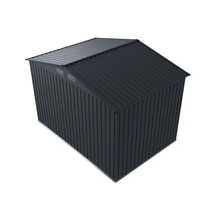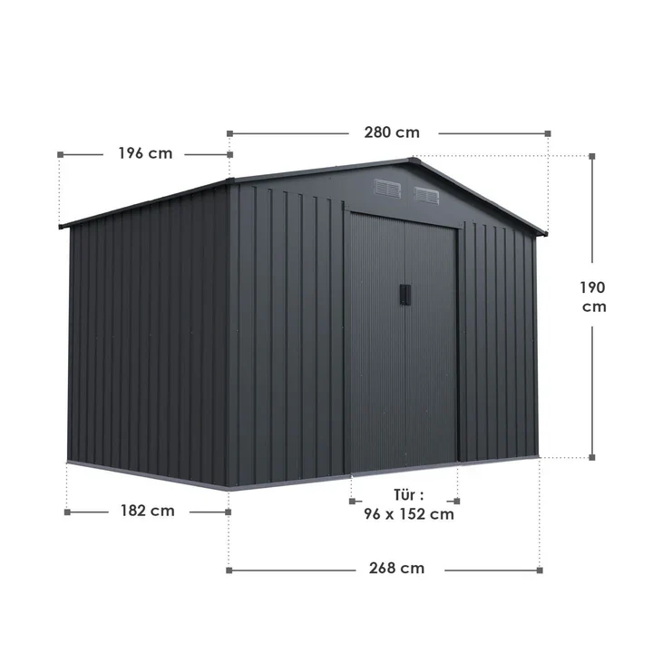 De schuur, gemaakt van thermisch verzinkt plaatstaal, is bestand tegen weersinvloeden, uv-straling en vuil. Het duurzame materiaal is zeer stabiel, veerkrachtig en waterdicht. Regen en zon laten hem volledig ongemoeid.