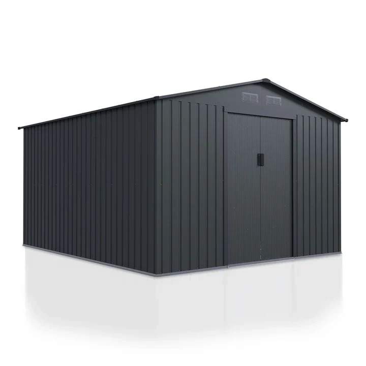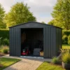 Een gedeelde schuifdeur biedt het hele jaar door toegang tot de gereedschapsschuur. De brede opening van 96 cm maakt het vervoer van omvangrijke spullen mogelijk. De deurgrepen kunnen ook worden voorzien van een slot voor veilige vergrendeling.