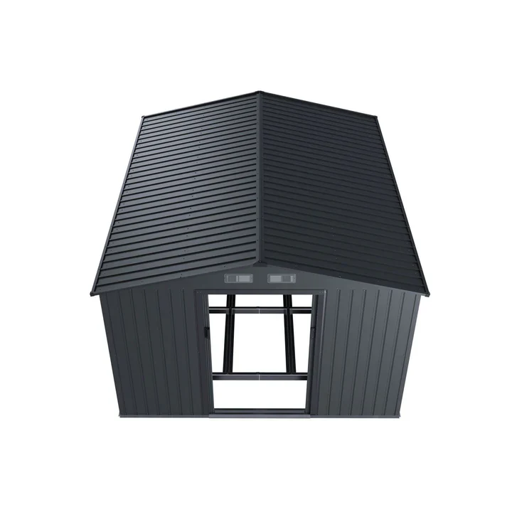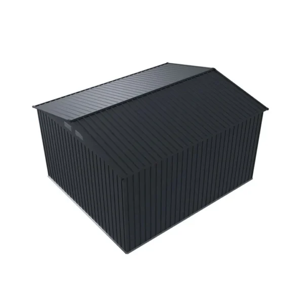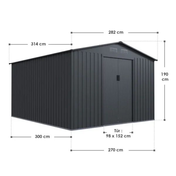 De schuur, gemaakt van thermisch verzinkt plaatstaal, is bestand tegen weersinvloeden, uv-straling en vuil. Het duurzame materiaal is zeer stabiel, veerkrachtig en waterdicht. Regen en zon laten hem volledig ongemoeid.