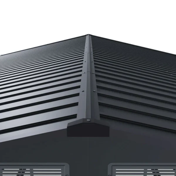 Een stijlvol lessenaarsdak op de dakrand biedt uitstekende weerbestendigheid. Dankzij het schuine dak kan regenwater gemakkelijk naar achteren wegstromen. De hoeken van het dak zijn beschermd met dakrandbescherming.