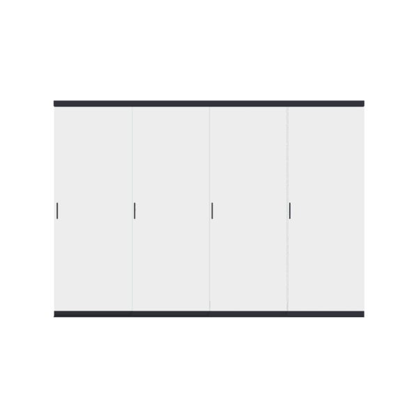 De profielvrije glaswanden zijn uitgevoerd met een praktisch 4-rails systeem. Hierdoor kunnen de glazen panelen soepel en onafhankelijk van elkaar worden verschoven. De rails zijn gemaakt van hoogwaardig aluminium. Je bepaalt zelf hoeveel panelen je openzet en aan welke zijkant, zodat je eenvoudig de perfecte balans vindt tussen beschutting en openheid. Dankzij dit systeem schuiven de panelen compact achter elkaar, waardoor je maximale doorgang en flexibiliteit behoudt.