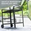 Wielen en zijhandvat: Uitgerust met een zijhandvat en twee grote vaste wielen, maakt onze buitenbedieningstrolley moeiteloos verkeer en veilig parkeren in uw tuin of andere buitenruimtes mogelijk.