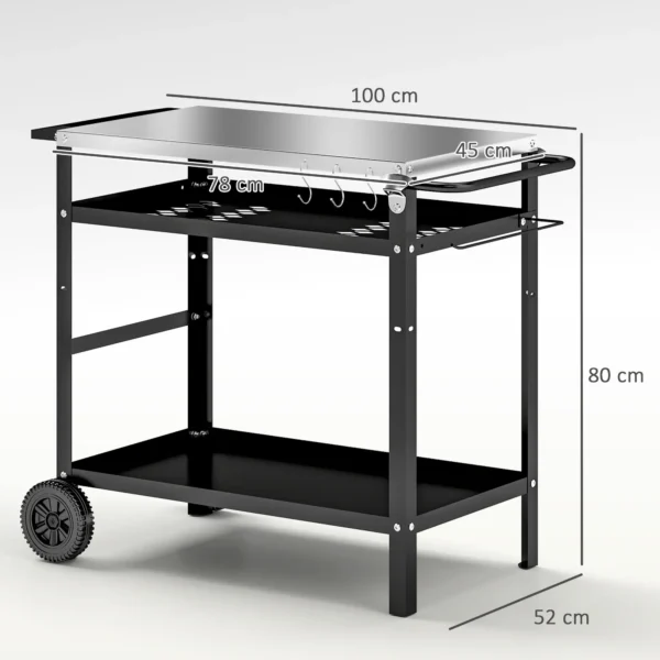 Roestvrijstalen aanrechtblad: 78L x 45B cm Gemakkelijk te onderhouden roestvrijstalen werkblad van de grillkar biedt plaats aan een pizzaoven, draagbare grill en bakplaat, ideaal voor al uw kookbehoeften.