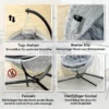 Ruime eierhangmatstoel: De brede zitting met ademende hoes biedt je een koele en comfortabele toevluchtsoord, vergelijkbaar met een vogelnest – ideaal voor ontspannende momenten met een prachtig uitzicht