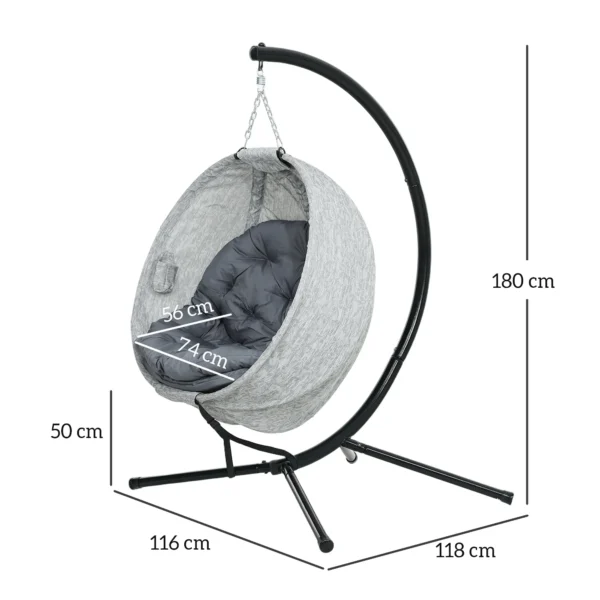 ✔ Poedergecoat stalen frame van de hangstoel met een vierpotige basis voor stabiliteit