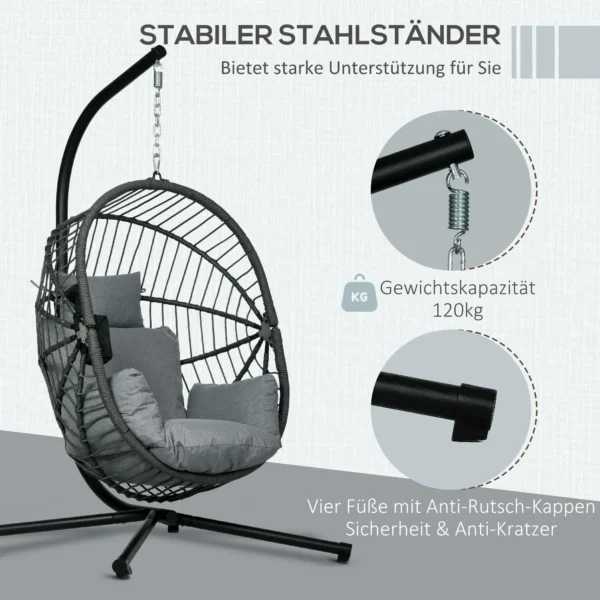 Wolkachtig comfort: De hangstoel met frame heeft een kussen van 20 cm en een kussen van 12 cm dik, beide met afneembare hoezen voor eenvoudige schoonmaak. Pak een boek en een drankje en geniet van een ontspannen tijd
