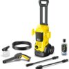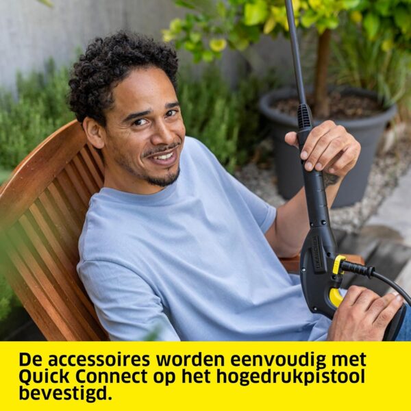 Kärcher K 2 Premium FJ. Hogedrukreiniger met efficiënte prestaties voor beginners De Kärcher K 2 Premium FJ is de ideale hogedrukreiniger voor dagelijkse reinigingsklussen in de tuin en rondom het huis. Met een maximale druk van 110 bar worden tuinmeubelen, gereedschap, fietsen en auto’s effectief gereinigd. De spuitlans en vuilfrees zijn eenvoudig aan te sluiten via het Quick Connect-systeem en zijn geschikt voor verschillende reinigingstoepassingen. Wanneer ze niet in gebruik zijn, kunnen de accessoires direct op het apparaat worden opgeborgen.