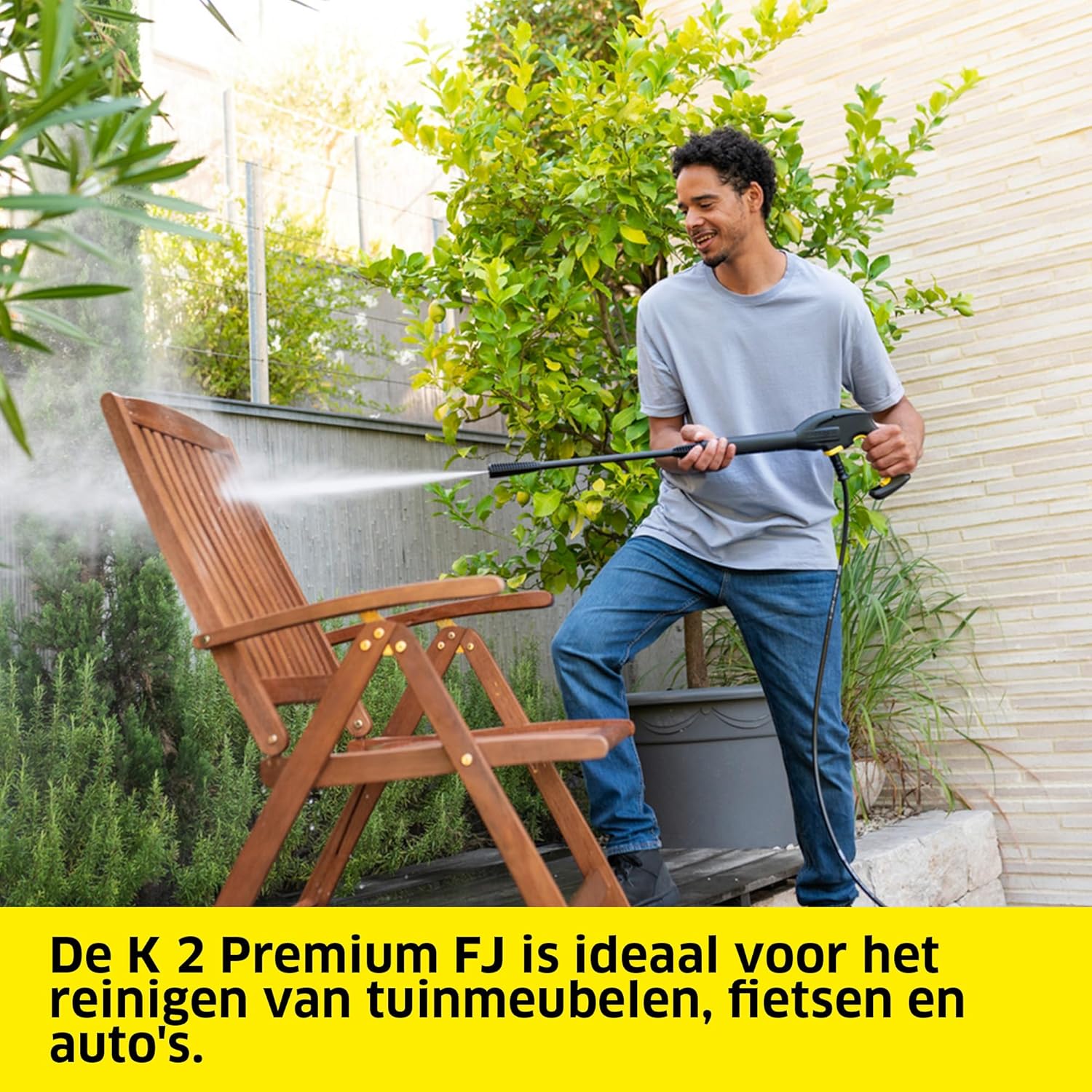 Efficiënte reiniging: Met een maximale druk van 110 bar is de Kärcher K 2 Premium FJ ideaal voor het reinigen van auto’s, fietsen, tuinmeubelen en tuingereedschap
