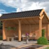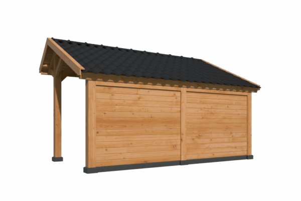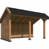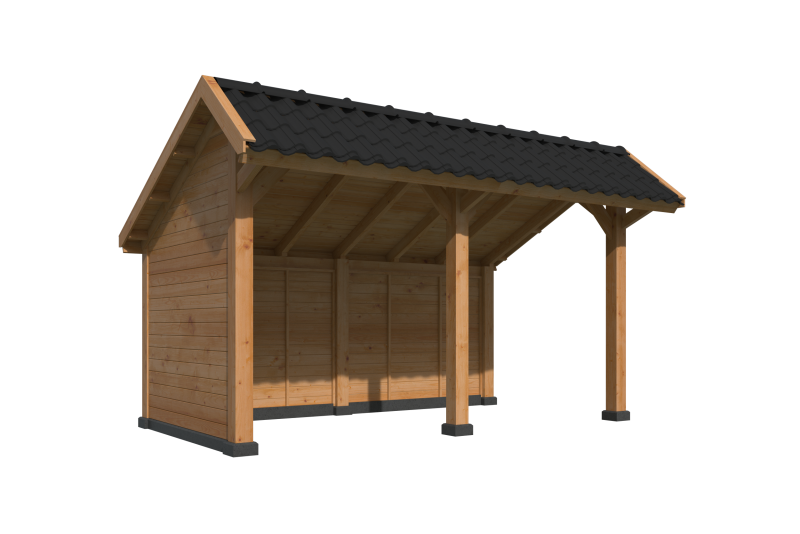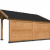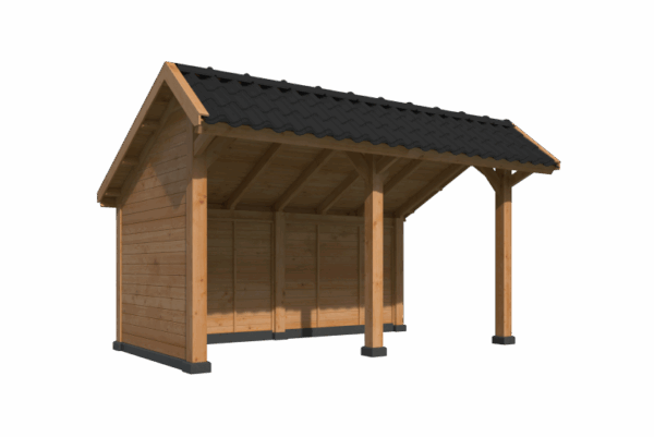 Dit buitenverblijf is aan de achterkant helemaal dicht. En aan 1 zijde is deze Lariks Douglas houten kapschuur ook helemaal afgesloten, zo zit u heerlijk beschut. De blanke wanden voor de achter- en zijwand zijn onbehandeld en opgebouwd met blanke Lariks Douglas potdeksel planken van 19.5 cm breed en 2.2 cm dik. Het regelwerk voor de opbouw van de Lariks potdekselwanden worden standaard meegeleverd.