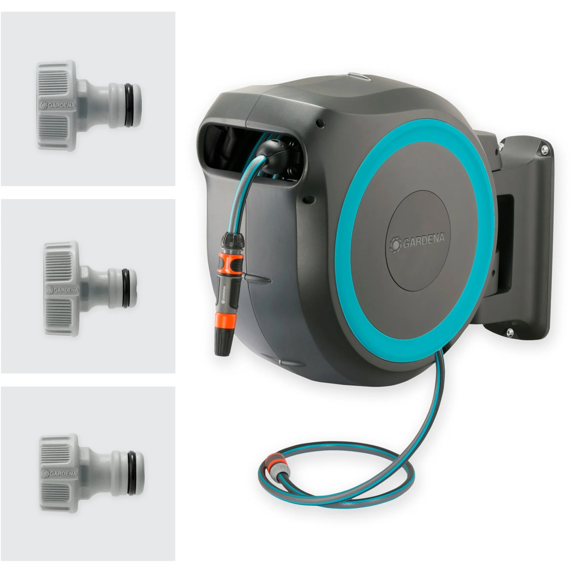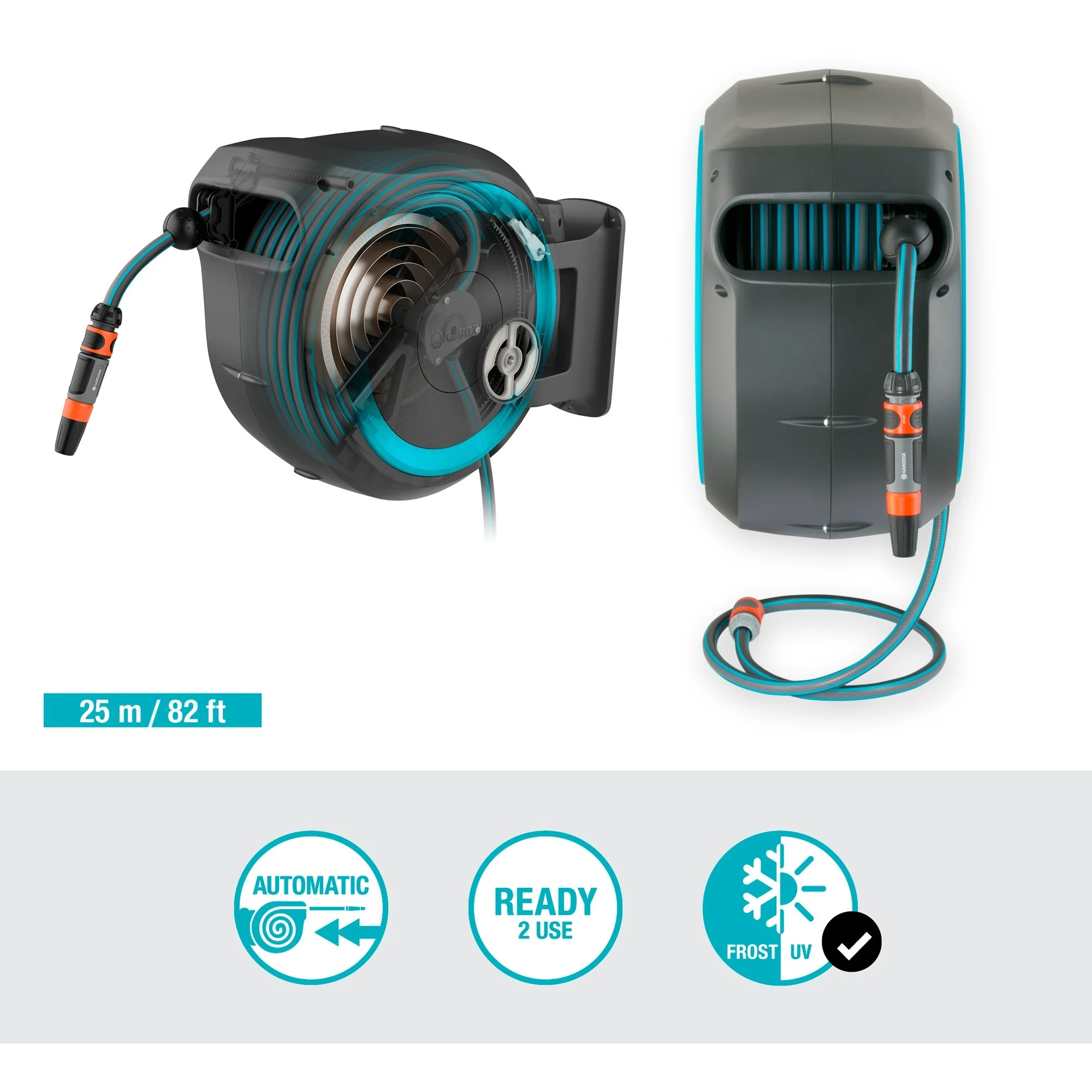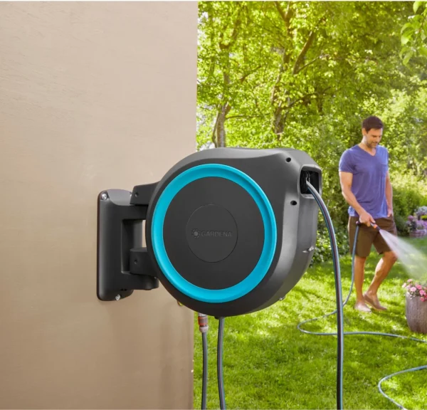 De innovatieve RollControl-technologie zorgt voor veilig en gecontroleerd oprollen.  Dankzij de geïntegreerde slanggeleider ontstaan er geen knopen of knikken bij het oprollen van de slang, waardoor schade aan de tuinslang wordt voorkomen. Met de kraan- en slangkoppelingen van het Original GARDENA System kan je de slang flexibel verlengen of andere GARDENA opzetstukken bevestigen.
