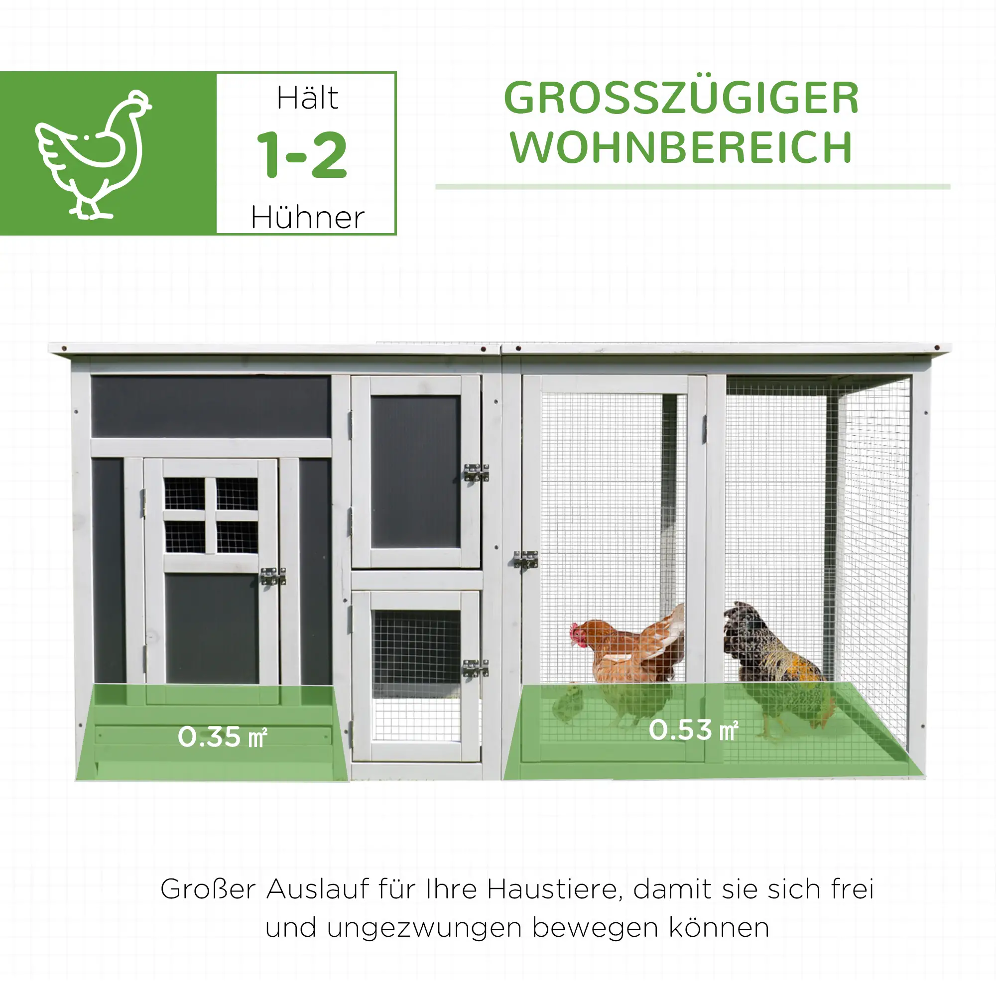 ✔ Biedt genoeg ruimte voor 1-2 kippen, eenden of konijnen