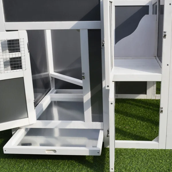 Weerbestendig dak: Het UV-bestendige en waterdichte dak van het kippenhok biedt optimale bescherming tegen zon en regen, zodat je kippen het hele jaar door een veilige en aangename plek hebben om te verblijven.