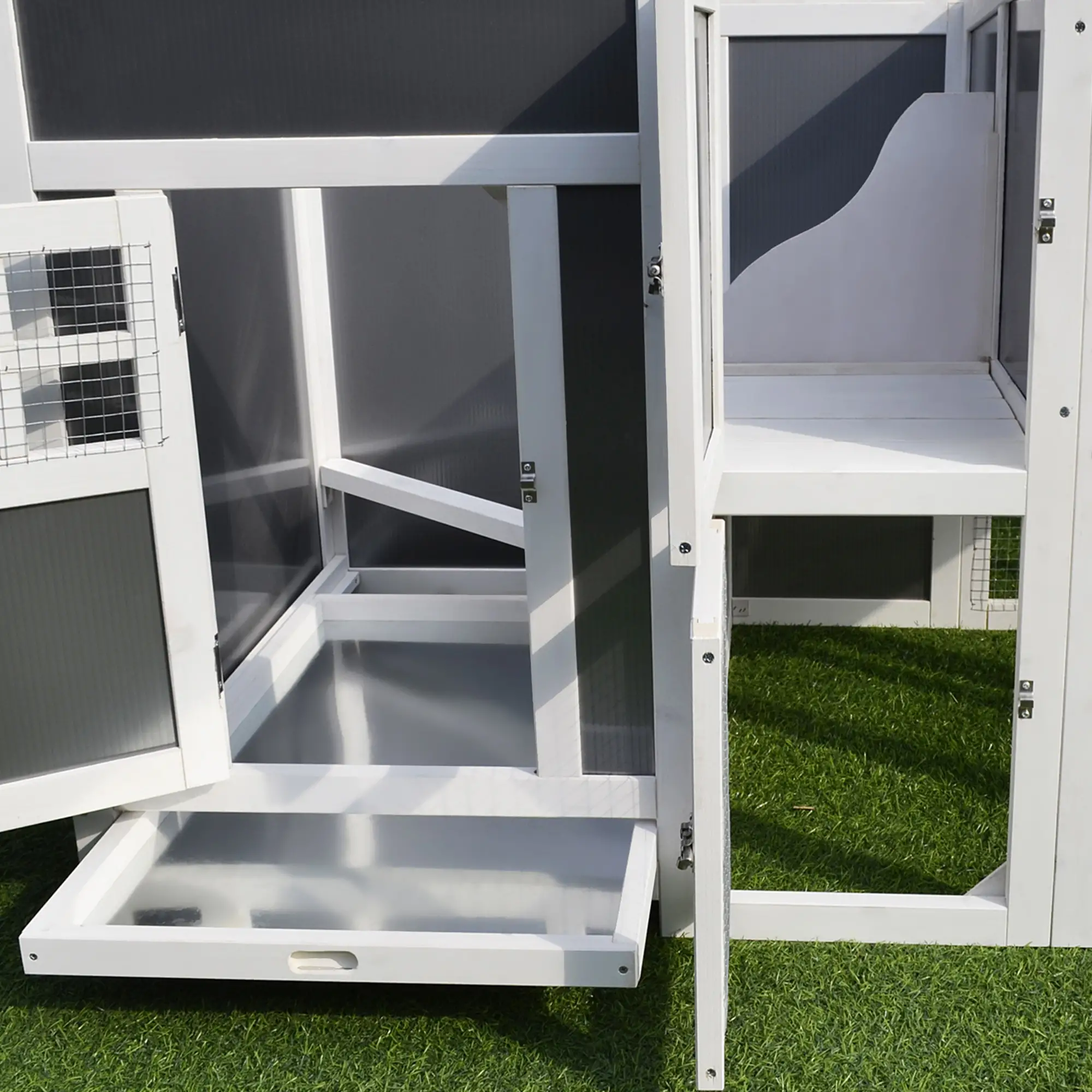 Gemakkelijke bereikbaarheid: Meerdere deuren maken het mogelijk voor de kippen om vrij te bewegen, terwijl je gemakkelijk toegang hebt om je dieren te voeren, te controleren en voor hen te zorgen. Dit maakt het dagelijkse werk makkelijker en zorgt voor meer veiligheid.