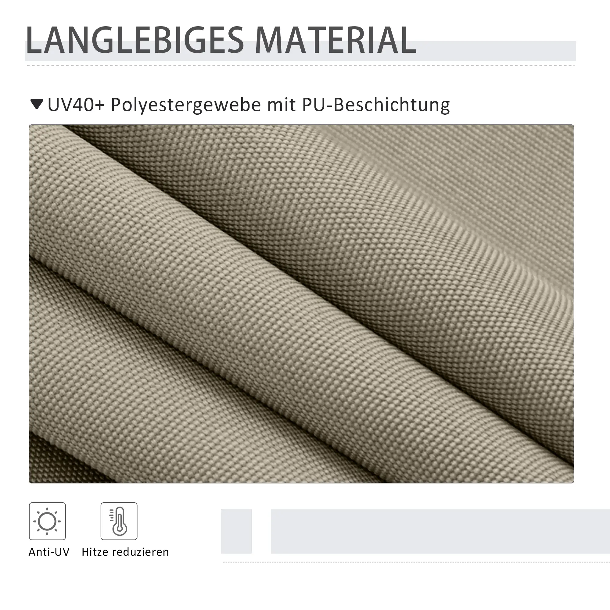 Veilig beschermd: De zijluifel is gemaakt van UV40+ synthetisch leer gecoat polyester dat schaduw biedt zonder te vervagen. Bescherm je huid tegen schadelijke UV-stralen en geniet van een aangename privacybescherming.