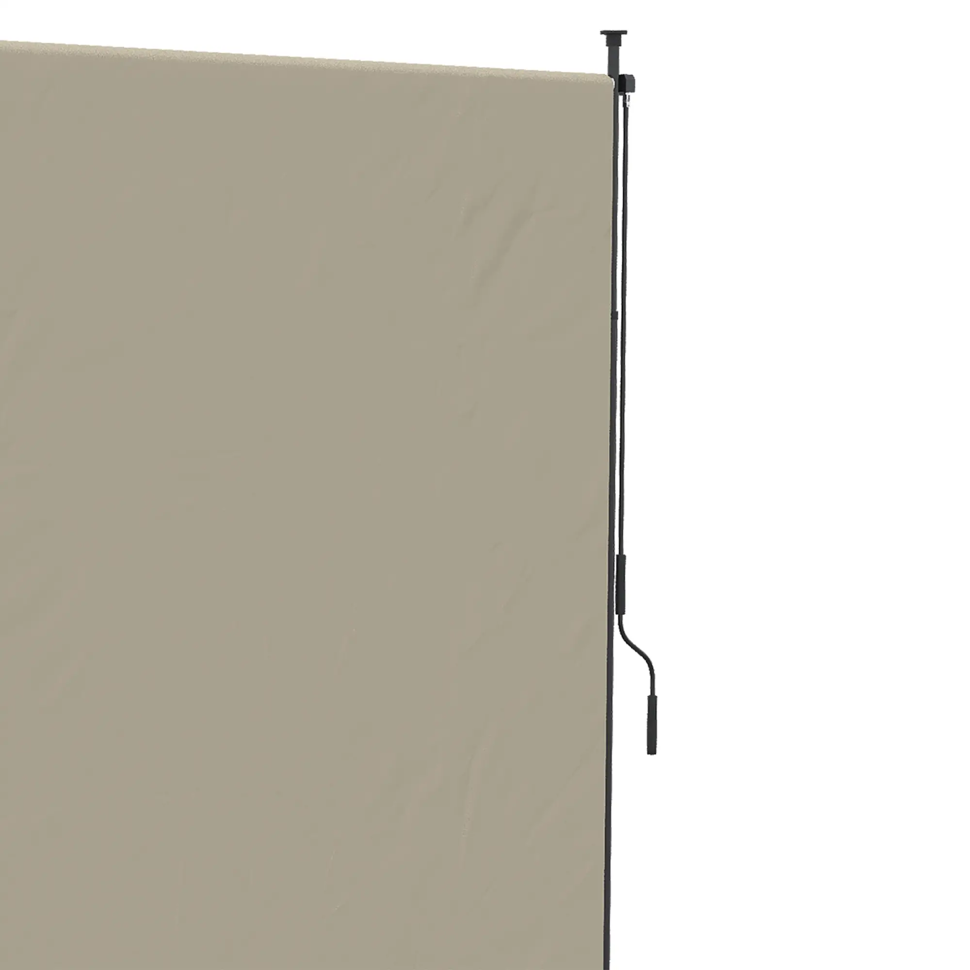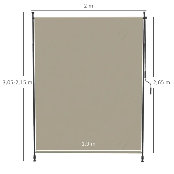 Plafondhoog ontwerp: Dankzij de verstelbare klemstangen kun je de hoogte van de zijluifel eenvoudig tussen 2,15 en 3,05 m instellen. De constructie vereist geen boorwerk en voorkomt daardoor schade aan uw muren, met deze luifel die geschikt is voor bijna elk oppervlak.