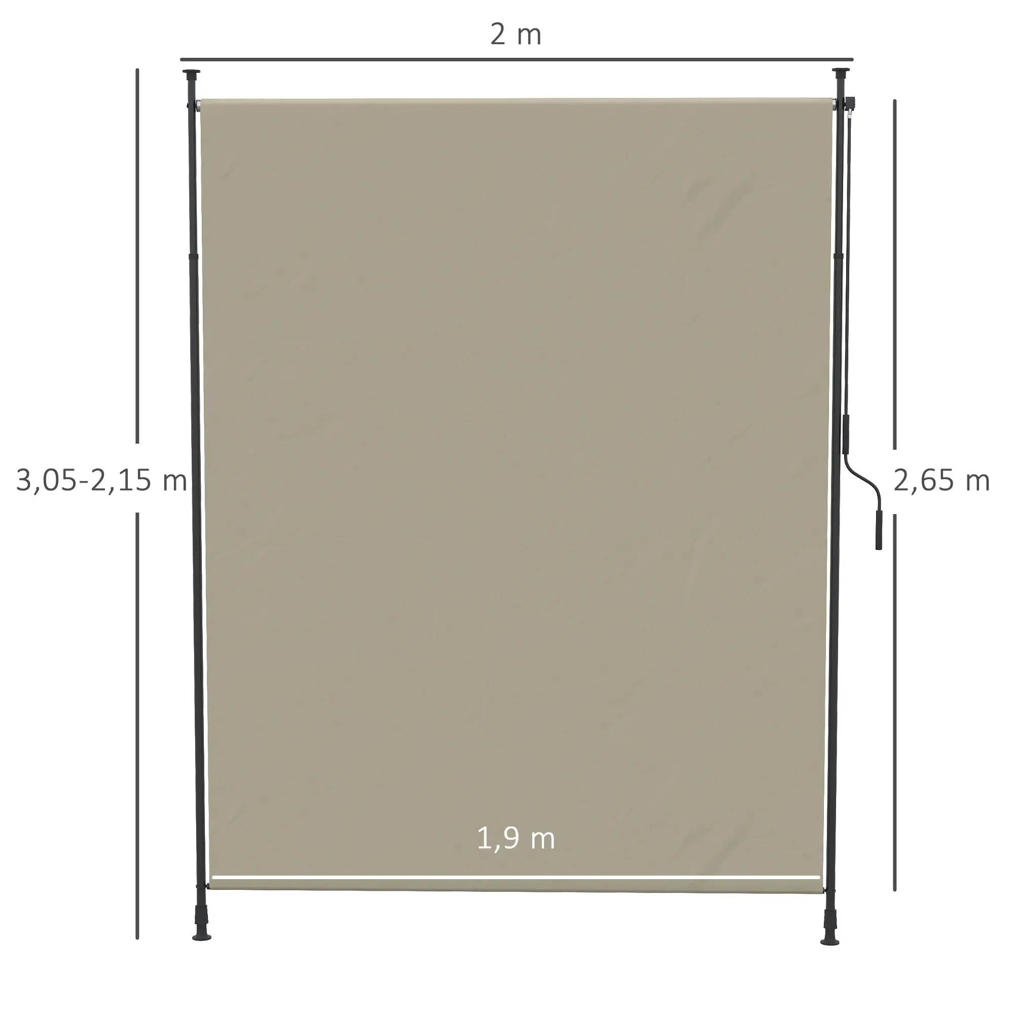 ✔ Luifelzeil: 200W x 215-305H cm
