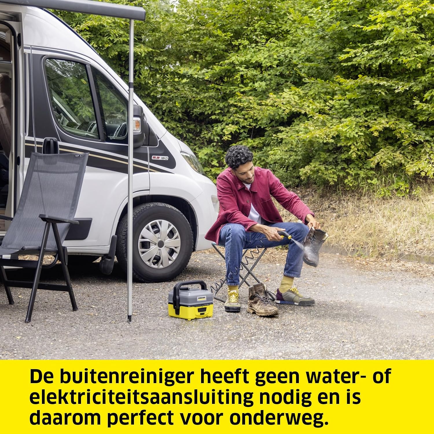 Veelzijdig inzetbaar: de vlakstraalsproeier van de Kärcher OC 3 reinigt voorzichtig maar effectief en is ideaal voor bijv. vuile schoenen, fietsen of kinderspeelgoed, tuin- en kampeeruitrusting