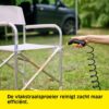 Betrouwbare accu: De lithium-ion accu heeft een werktijd tot 15 minuten. Het LED-licht op de buitenreiniger geeft aan wanneer de accu bijna leeg is of wordt opgeladen