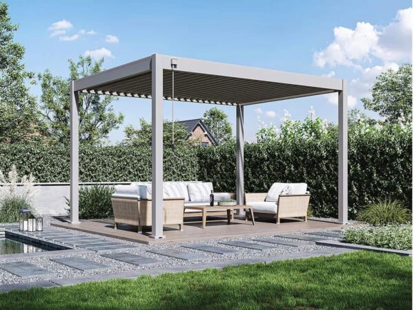 De Deluxe overkapping biedt een overdekte ruimte van 12 m² waar je kan genieten van het buitenleven in alle seizoenen. Daarnaast is deze pergola perfect geschikt als overkapping voor een lounge set, zwembad of spa. De overkapping kan ook dienen als carport voor een motor of auto.