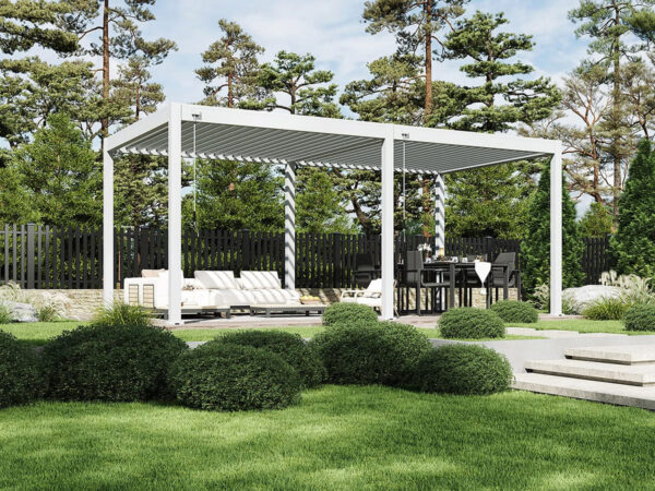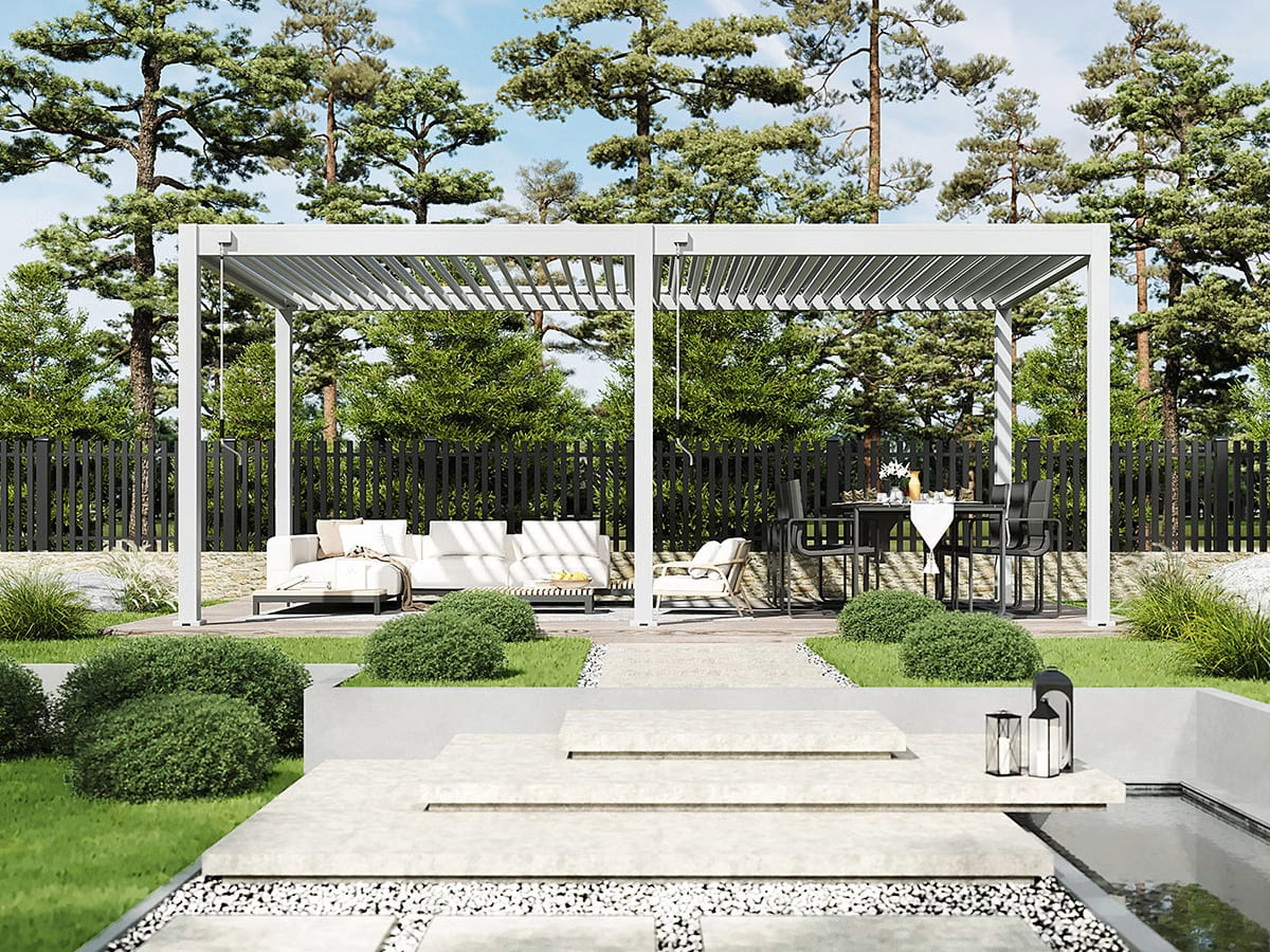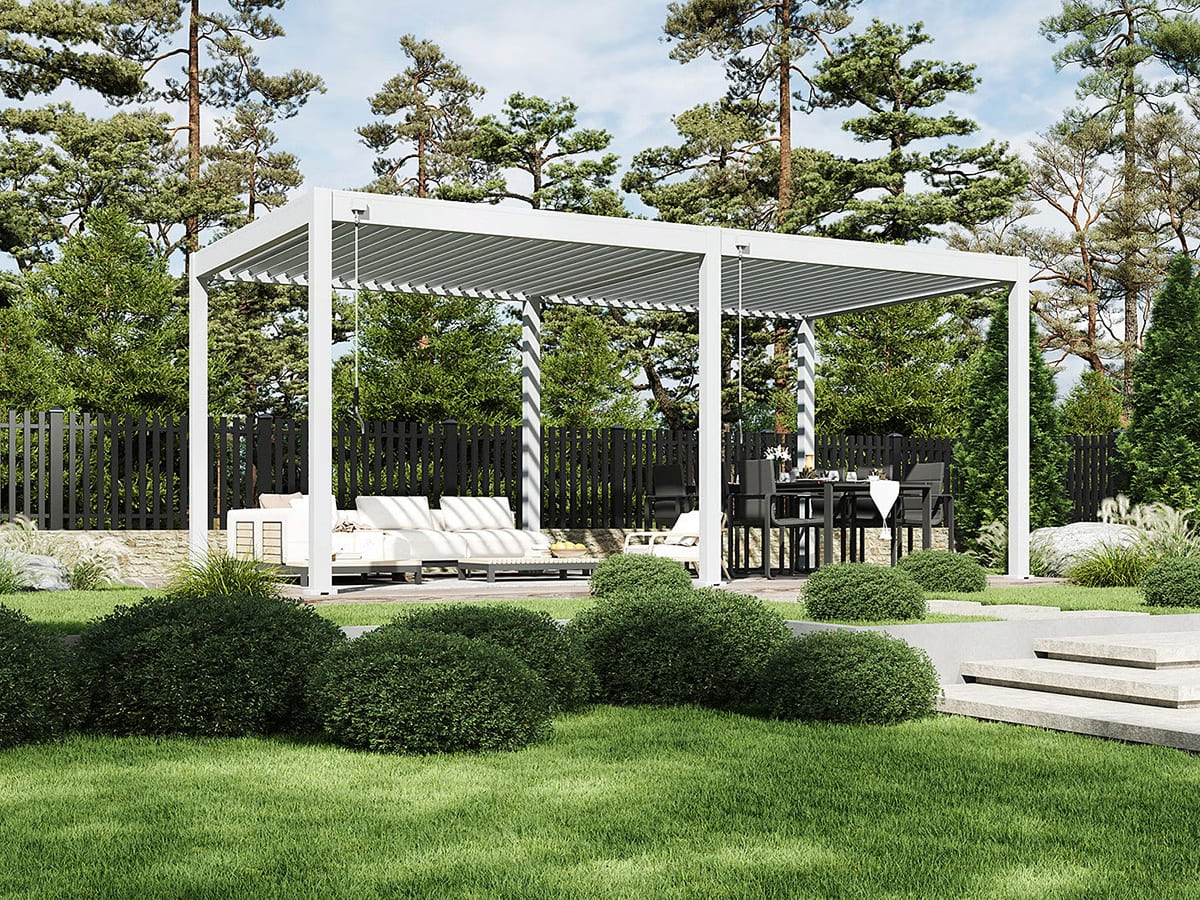 Zowel het frame en de lamellen zijn gemaakt van aluminium, het beste materiaal voor buiten. Het roest niet en is bestand tegen weersinvloeden en UV-straling. Met de beschikbare accessoires zorg je voor extra privacy en zit je nog comfortabeler onder je overkapping.