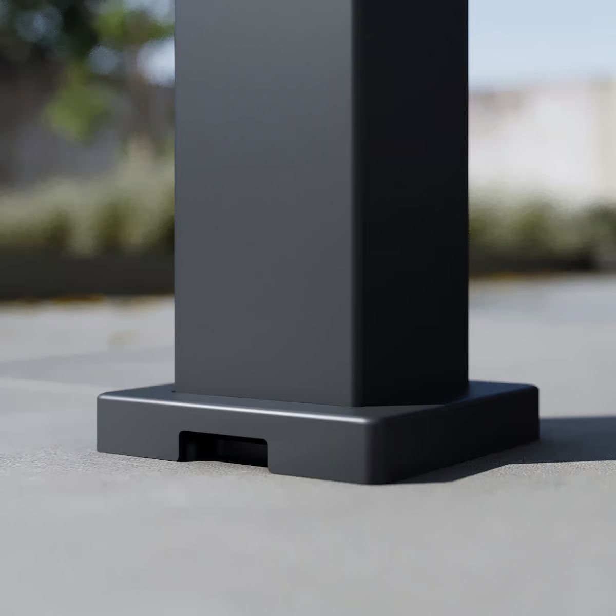 *De richting van de waterafvoer kan onderaan de poot zelf worden geregeld door een opening in de afdekking van de poot. Hierdoor voorkom je dat je terras onder water komt te staan.