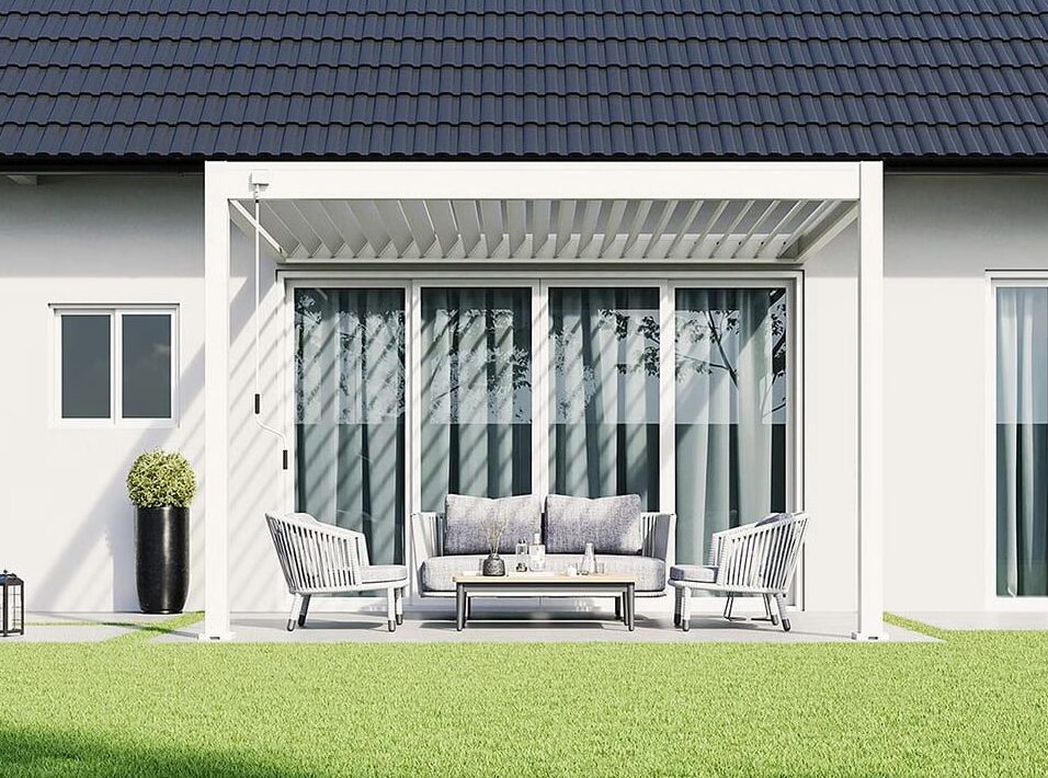*Je Deluxe pergola 300 x 360 cm uitbreiden met accessoires? Dat kan! Met het Pull Down Zijscherm of het Louvre Shutter paneel zit je heerlijk in de schaduw en beschut tegen de wind.