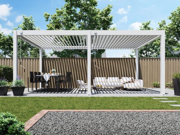 Je Premium overkapping uitbreiden met accessoires? Dat kan! Met het Pull Down Zijscherm of het Louvre Shutter paneel zit je heerlijk in de schaduw en beschut tegen de wind. Daarnaast zorgen deze accessoires ook voor meer privacy. Door het unieke ontwerp bevestig je het zijscherm en het paneel volledig geïntegreerd in jouw pergola.