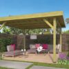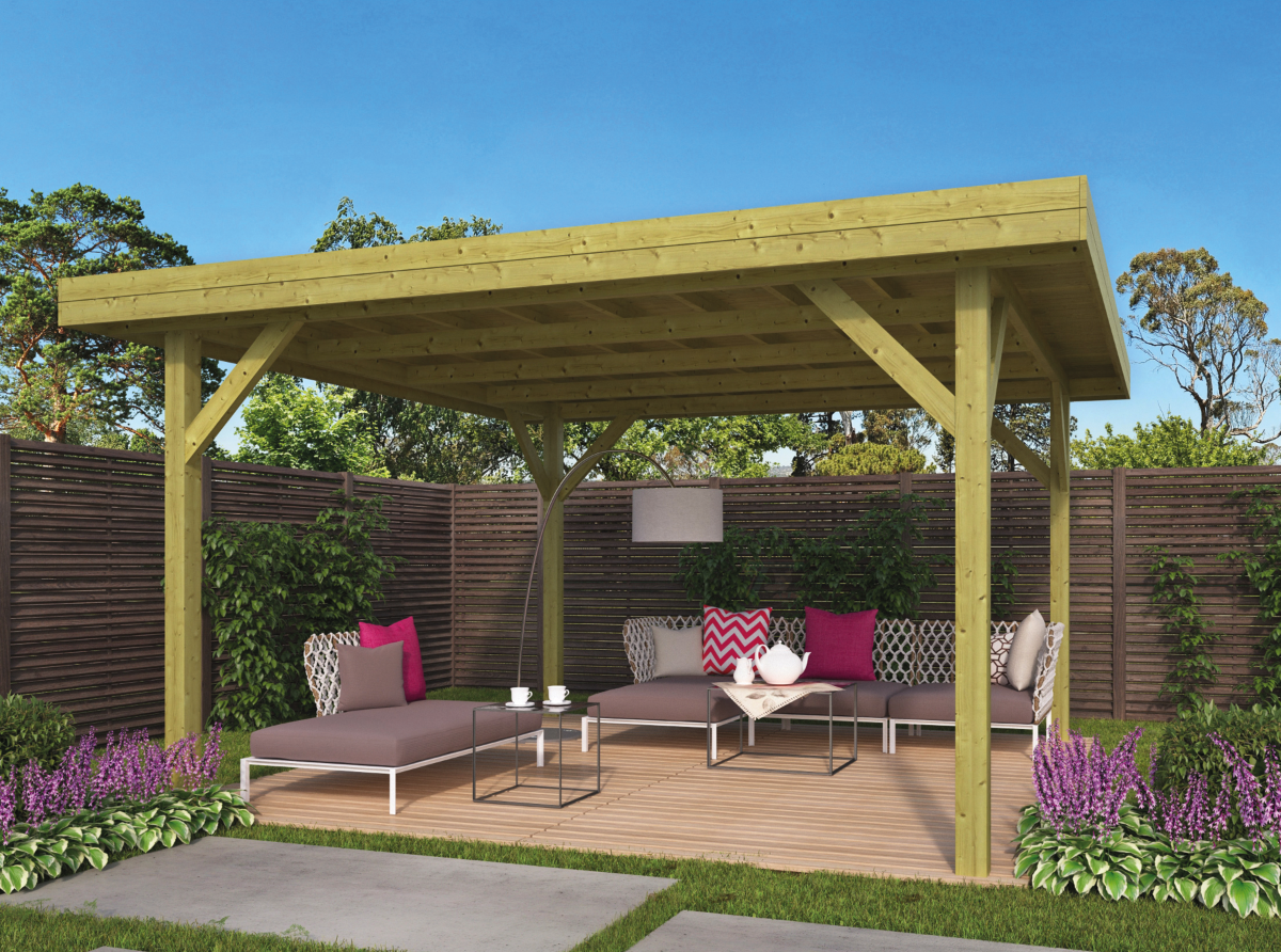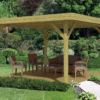Deze overkapping ca. 5×5 meter Prieel Naxos van Tuindeco is niet alleen groot en modern, ook beschermt deze terrasoverkapping uw tuinmeubelen tegen neerslag. Deze vierkante overkapping met plat dak is van zijde tot zijde maar liefst 445 cm lang en breed en is gemaakt van geïmpregneerd grenen hout. Door de enorme grootte is deze fraaie HC Huis & Tuin overkapping met name geschikt om een mooie zithoek met barbecue of loungeplek te creëren. U kunt hier heerlijk tot rust komen en genieten van de schaduw.
