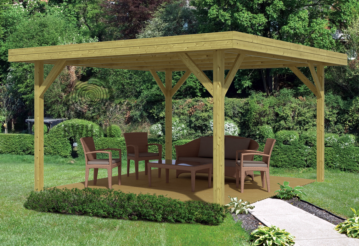 Het platte dak van Prieel Naxos is opgebouwd uit planken waardoor het een veel luxere uitstraling krijgt dan een dak met platen. Het platte dak wordt standaard geleverd zonder dakbedekking. Om dit geheel waterdicht en beschut tegen de regen te maken dient u dakbedekking mee te bestellen. Tevens is het materiaal geïmpregneerd en daardoor goed bestand tegen de weerselementen.