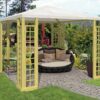Dit houten Prieel 3 x 3 meter van geïmpregneerd grenen hout wordt standaard geleverd inclusief trellis, wit zeildoek en bevestigingsmateriaal.